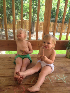We were picked up by two of Jake's closest friends and taken to the Anderson's house. You immediately made yourself at home exploring their playroom and back deck. Reese, their 2 1/2 year old little girl, was taking a nap when we arrived. When she awoke and was brought to the back patio to meet you, you greeted her with "this is my porch". Although a rocky start, the two of you hit it off. You played so well with her and mimicked her every move.